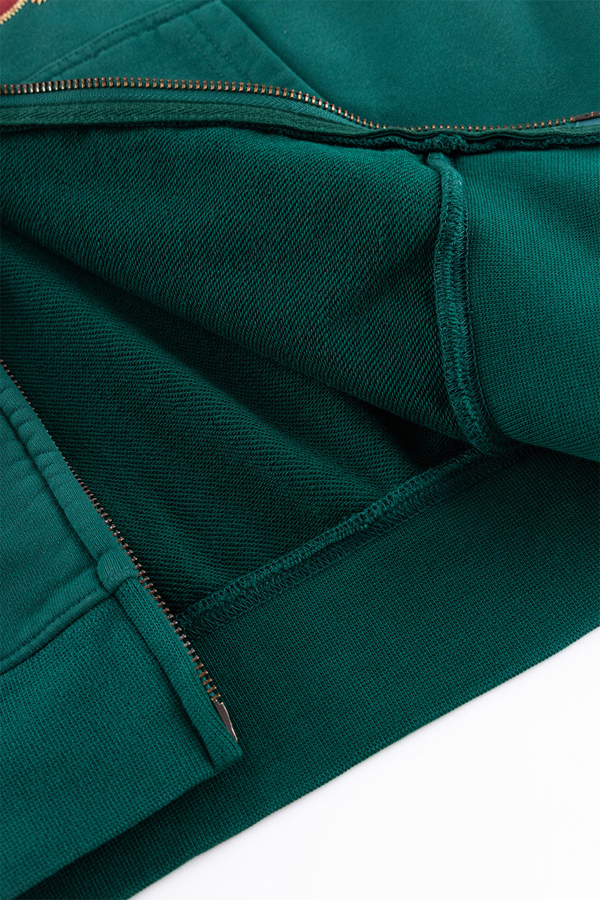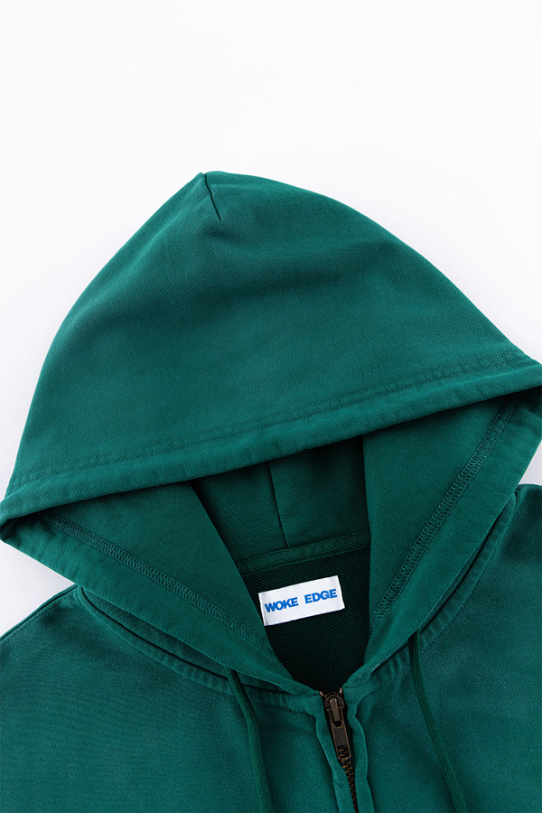 洗い加工のされたジップフーディーに